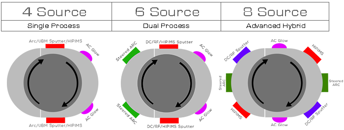 真空室選項——野馬的高度可配置的解決方案從一個室選擇基于數量的來源。高達8沉積位置可以配置一系列的沉積來源和電源配置。